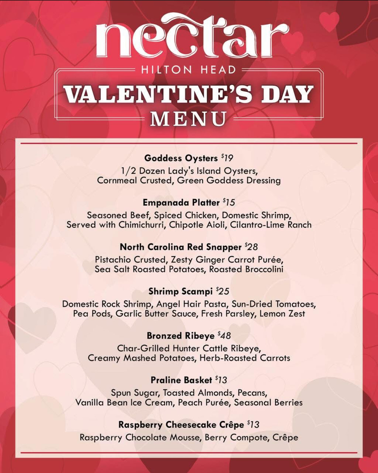 Hilton Head Valentine’s Menu